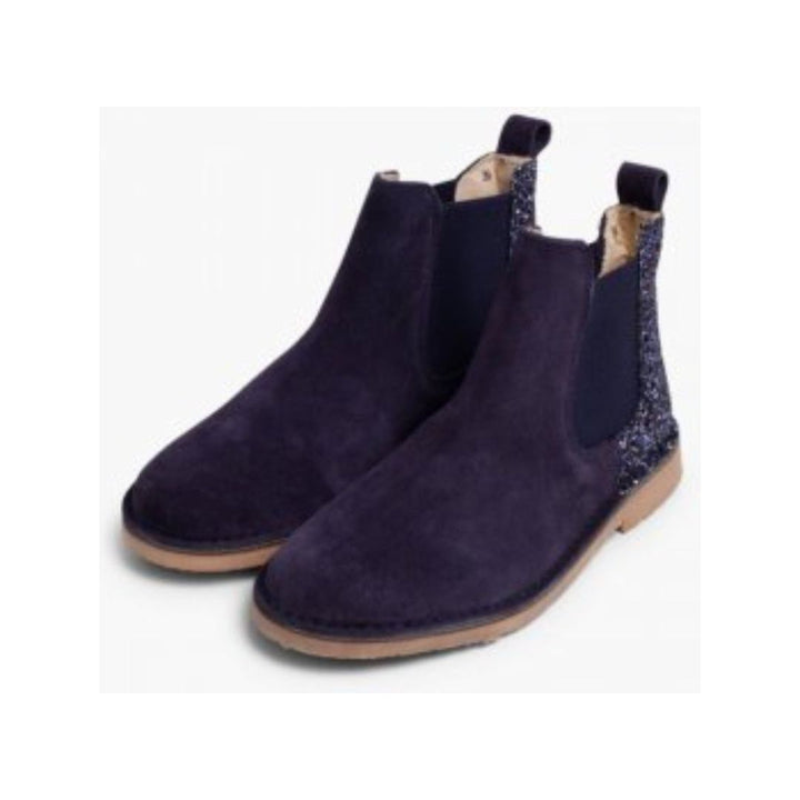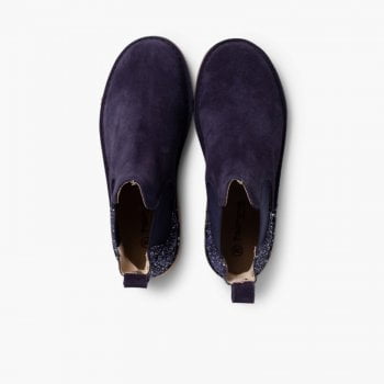 Botines de serraje, vuelven con fuerza esta temporada pero con un toque glitter en el talón, convirtiéndoles en un "must" para mamás y niñas. Por su comodidad, se convertirán en las botas imprescindibles de cada evento que se presente esta estación invernal pero sin olvidar cualquier look casual ya que le aporta un toque chic.