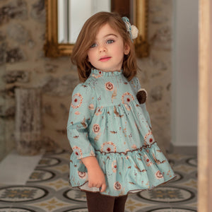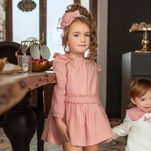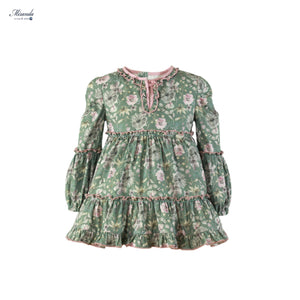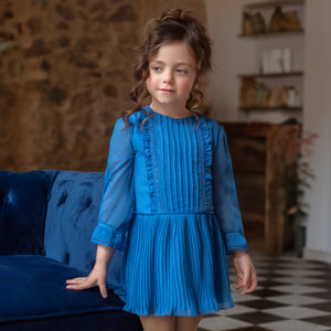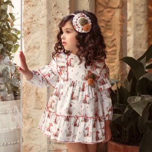 VESTIDO INFANTIL ESPAÑOL DE ALTA COSTURA. Diseño de corte clásico, inspirado en la tradición de la moda infantil española. Presenta una silueta con falda vuelo y un cuerpo entallado. Cada...