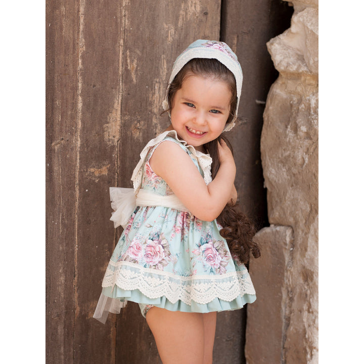 Jesusito con Capota y Braguita Flores Verde y Rosa