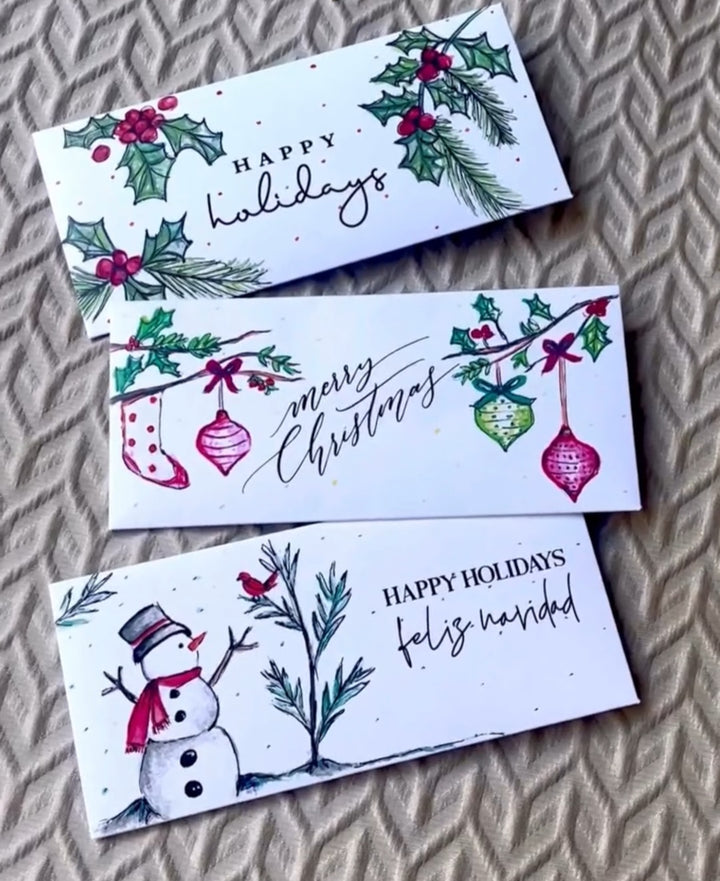 10 sobres navideños pintados en acuarela , un detalle perfecto para regalar dinero, cartas o mensajes especiales, con opción de personalizado.