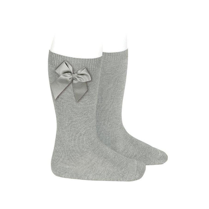 Calcetines de algodón, altos por debajo de la rodilla, en punto liso y con detaille de lazo de gros-grain a tono en el lateral.