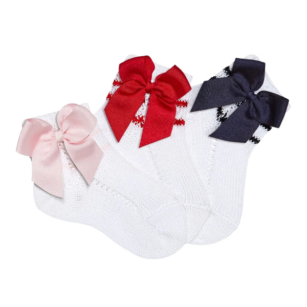 Calceta Corta Perlé Calada Lateral con Lazo ROSA PASTEL