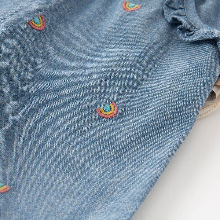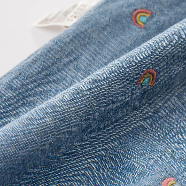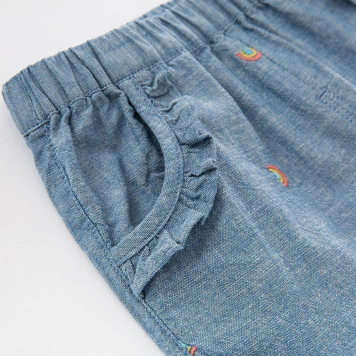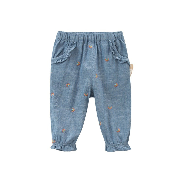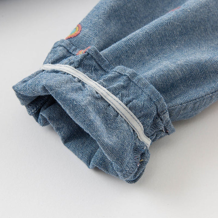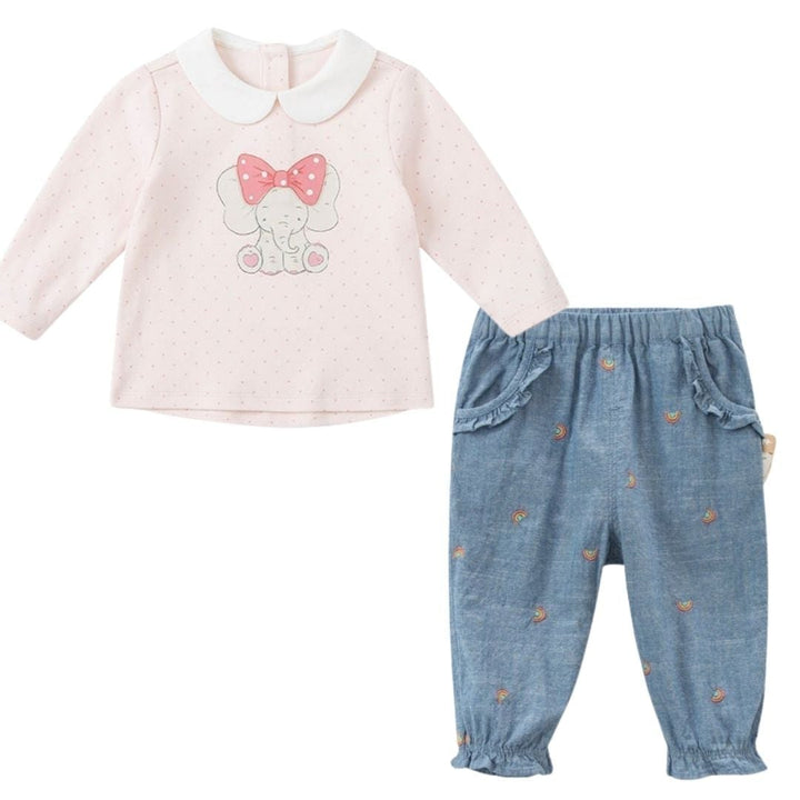 Conjunto de 2 piezas, parte superior camisenta 100% algodón con estampado infantil, parte baja jeans tipo jogger con elastico en cintura