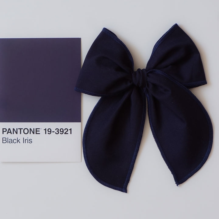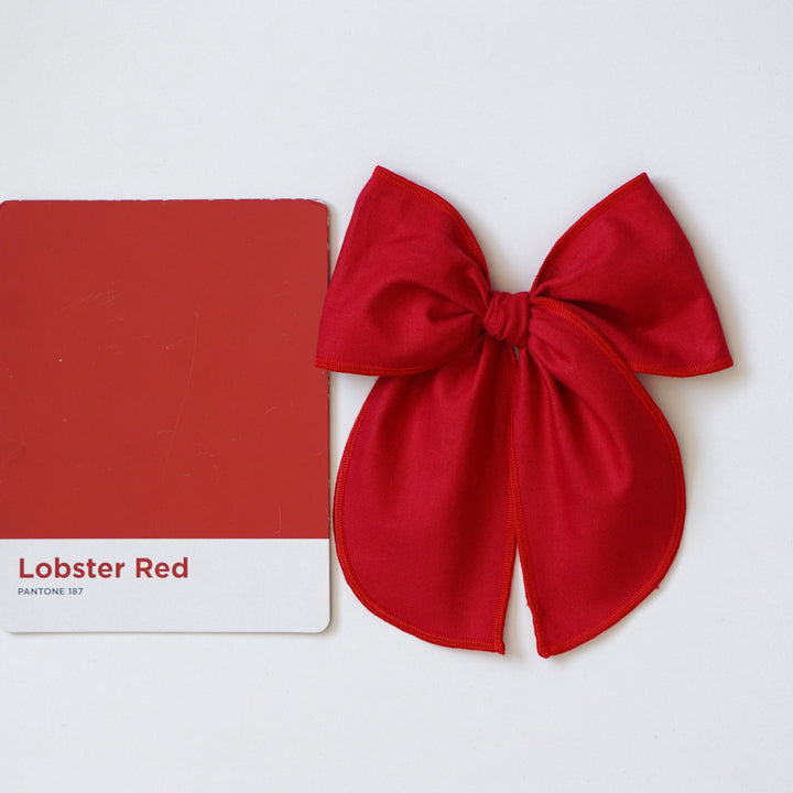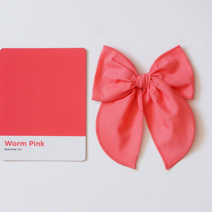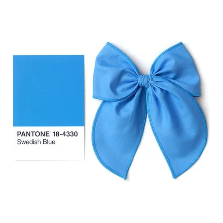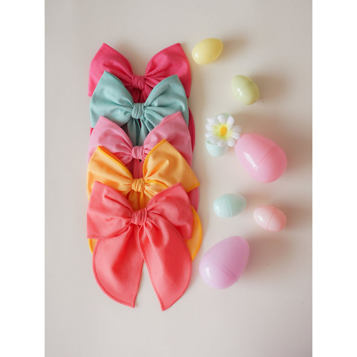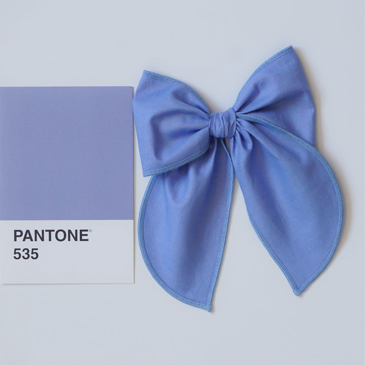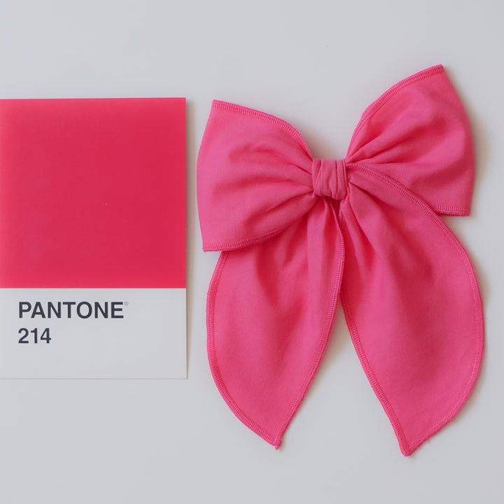 Moño elaborado a mano con tela de algodón, orilla en zigzag con hilo a tono.