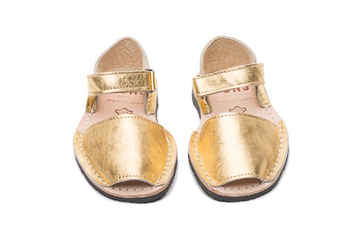 Avarca tipo frailera , cierre de correa de velcro porque proporciona soporte adicional para el talón dando una mayor estabilidad. Hechas a mano en la isla española de Menorca, las Avarcas para niños se producen con cuero y nobuk y tienen una suela de goma ligera y flexible.