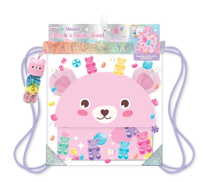 Este conjunto todo en uno promete comodidad, moda y practicidad para tu tiempo de playa y baño. El encantador conjunto de toallas de baño con capucha viene con un contenedor reutilizable que incluye gomas para el cabello y una linda mochila de cuerda transparente.