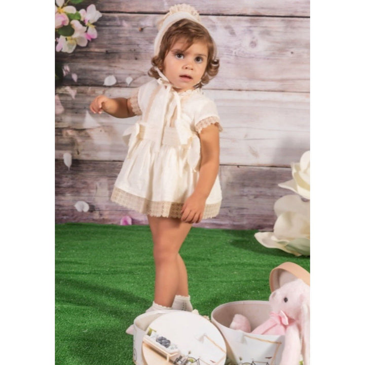 Jesusito plumeti con manga guipur y detalle de doble moño de seda