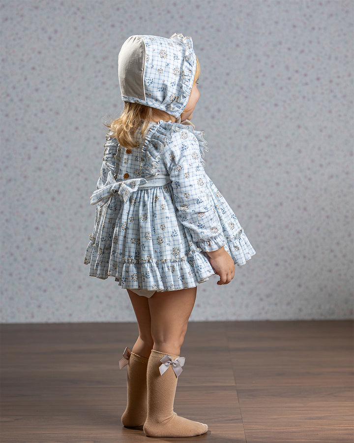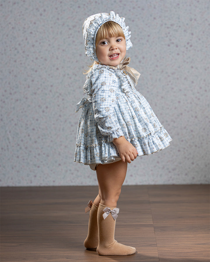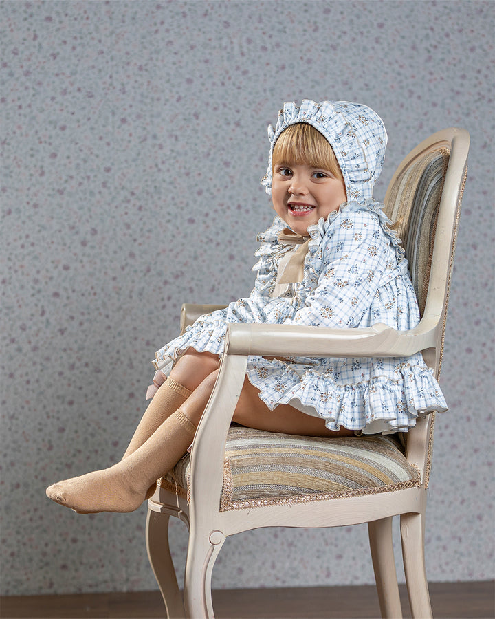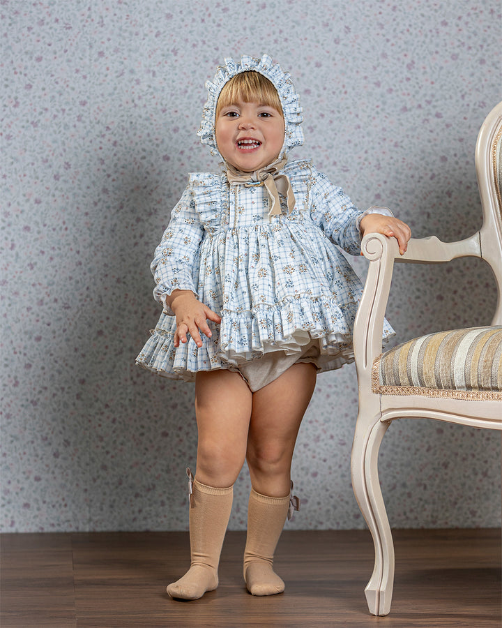 VESTIDO INFANTIL ESPAÑOL DE ALTA COSTURA. Diseño de corte clásico, inspirado en la tradición de la moda infantil española. Presenta una silueta con falda vuelo y un cuerpo entallado. Cada prenda es confeccionada a mano en talleres especializados en España, con un acabado perfecto con costuras invisibles y bordados personalizados, lo que garantiza una pieza única y exclusiva.