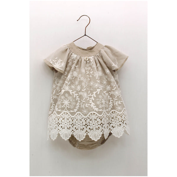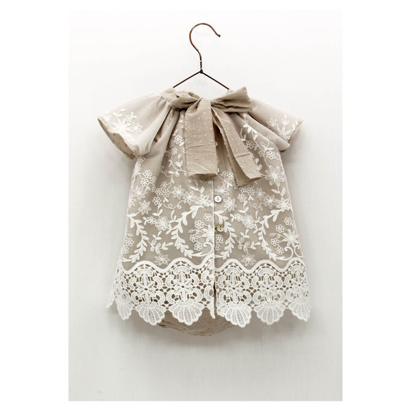 Jesusito de 3 piezas elaborado con lino natural y encaje español. Perfecto para ceremonia u ocasión especial.