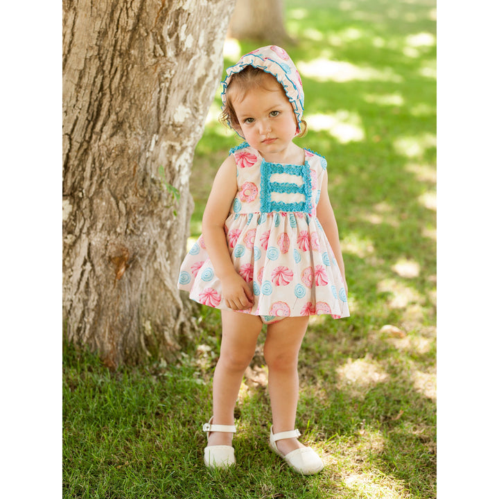 Jesusito , capota y braga a juego. Vestido elaborado en fresco algodón con forro.