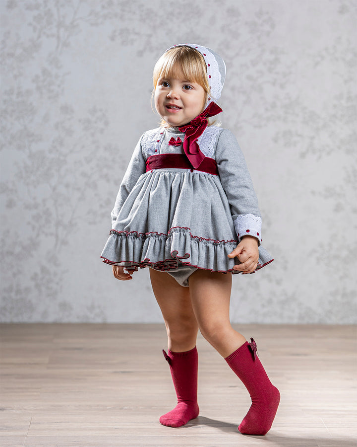 VESTIDO INFANTIL ESPAÑOL DE ALTA COSTURA. Diseño de corte clásico, inspirado en la tradición de la moda infantil española. Presenta una silueta con falda vuelo y un cuerpo entallado. Cada prenda es confeccionada a mano en talleres especializados en España, con un acabado perfecto con costuras invisibles y bordados personalizados, lo que garantiza una pieza única y exclusiva.