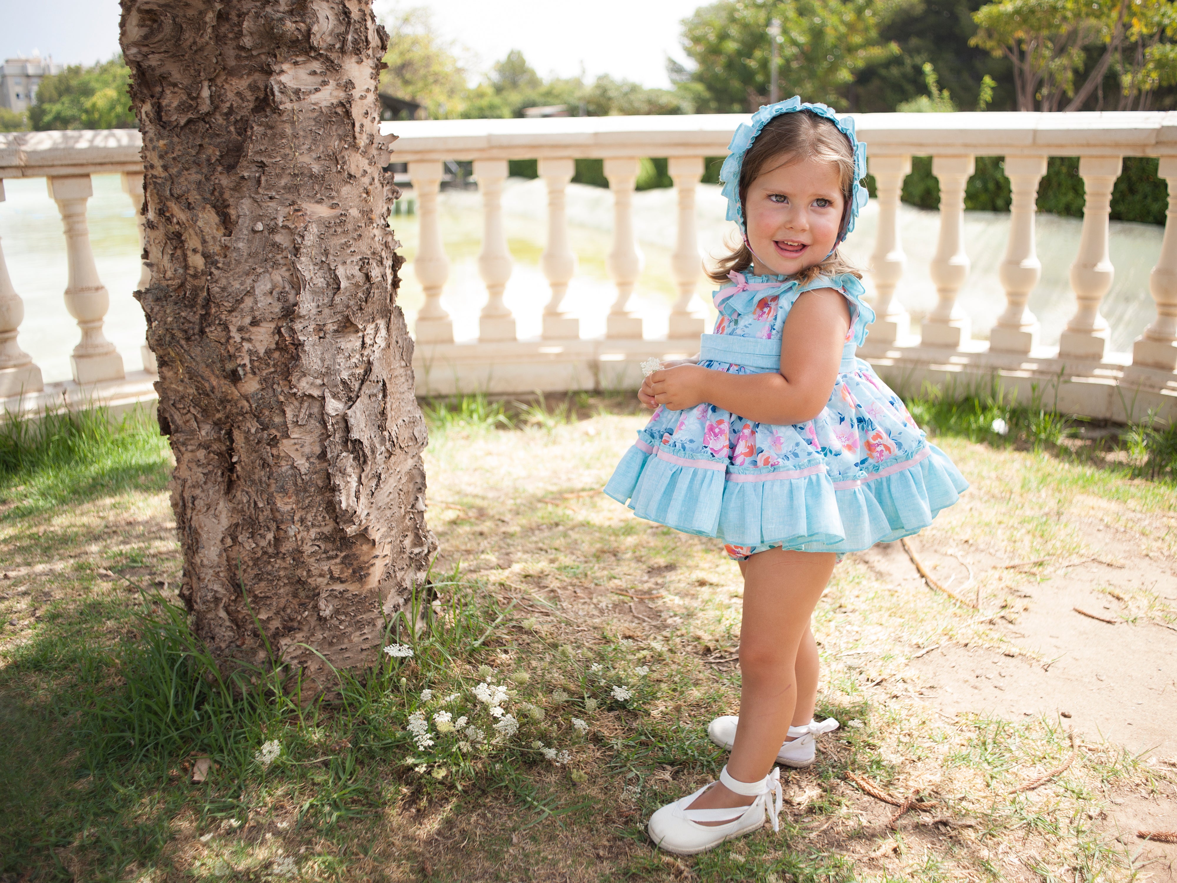 Jesusito con Capota y Braguita Flores Turquesa y Rosa
