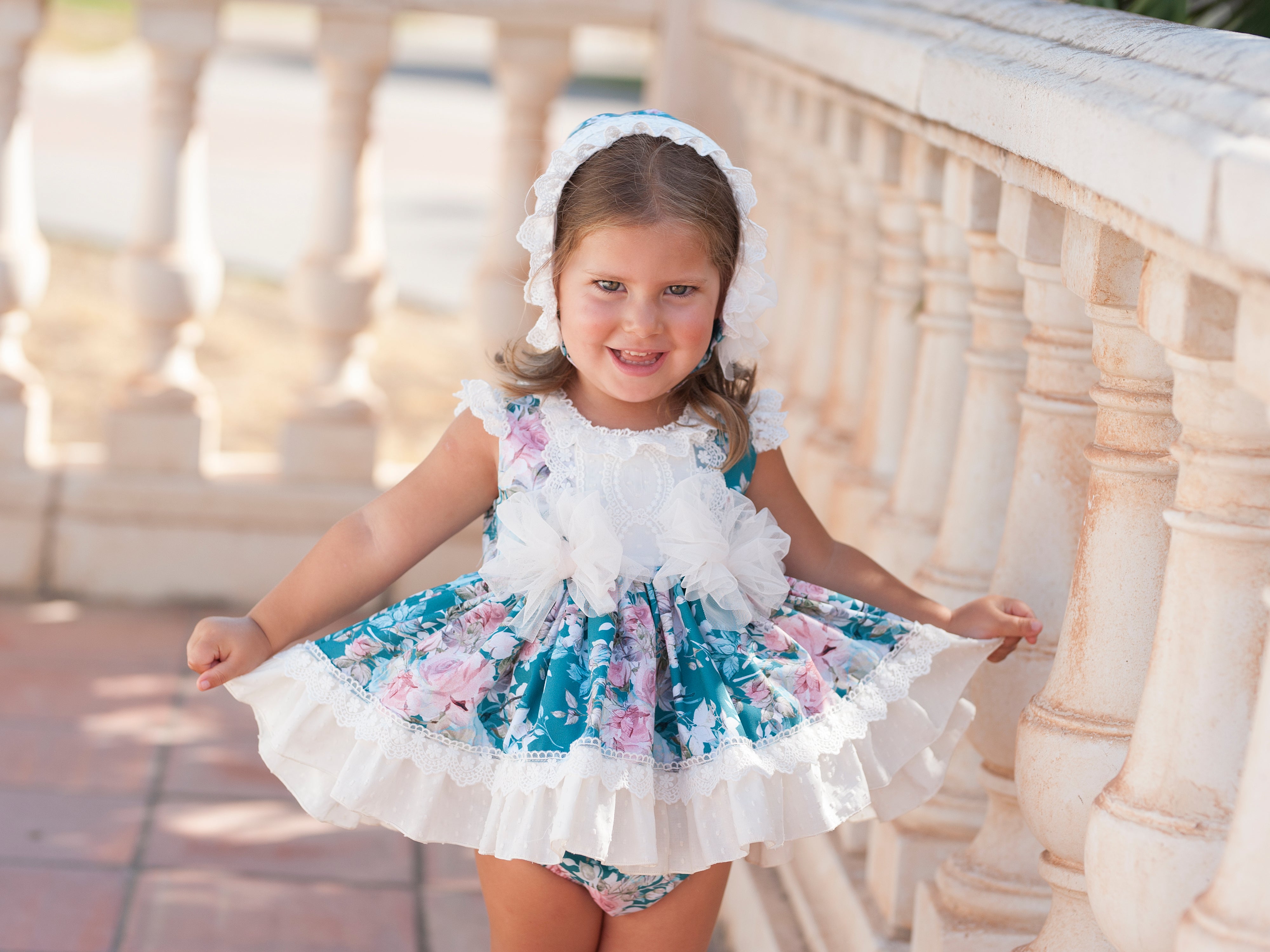 Jesusito con Capota y Braguita Rosas Fondo Esmeralda