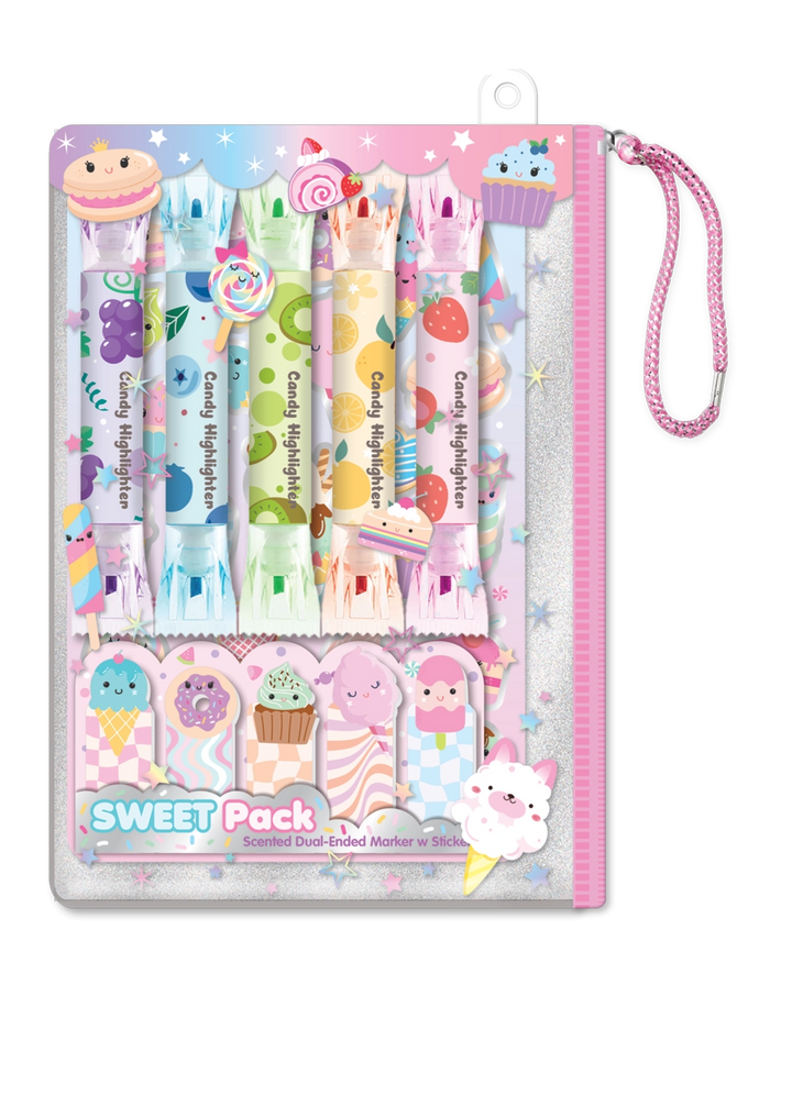 Este conjunto de marcadores de resaltado con temática de dulces es una excelente adición a los útiles escolares, proyectos de arte o como un regalo divertido. ¡Este conjunto hace que el proceso de resaltar texto sea más agradable!