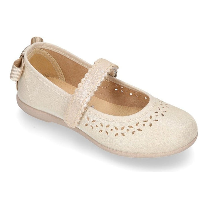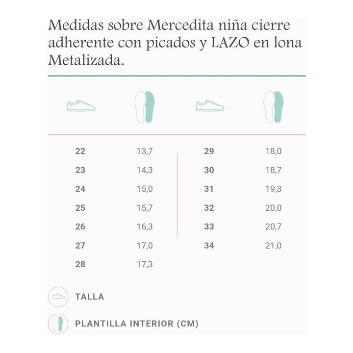 Merceditas niña en lona metalizada para Primavera-Verano con cierre adherente con diseño con LAZO y picados. Realizada en lona 100% con acabado metalizado y acabados de primera calidad. Una mercedita sencilla y muy práctica con el cierre adherente que facilita una mayor adaptabilidad a cada tipo de pie y con la elegancia del diseño con LAZO trasero y picados. Con una horma muy elegante. Combinan con toda su ropa esta más dulce y elegante esta Primavera-verano. Perfectas para ocasiones especiales o para el día a día esta temporada. Son un básico para combinar con todos los looks.