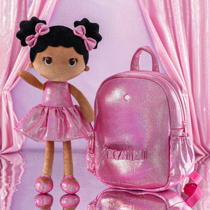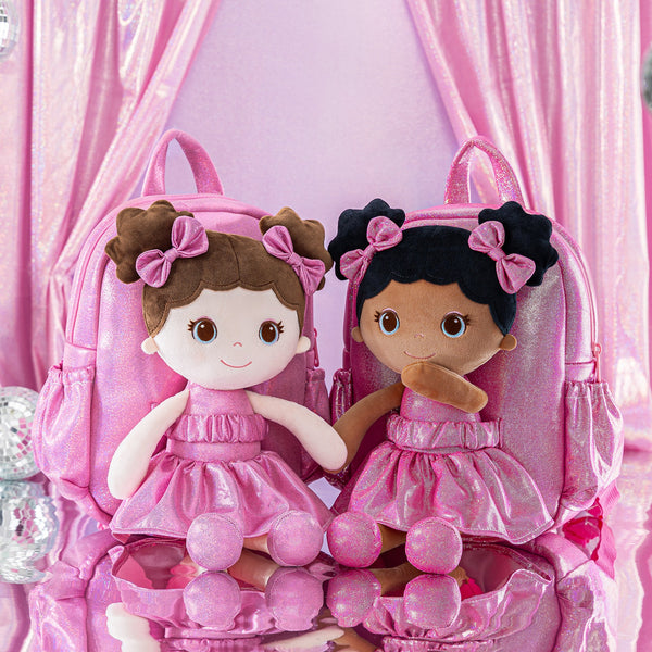 Mochila con muñeca apego Shiny Glitter Bright Pink