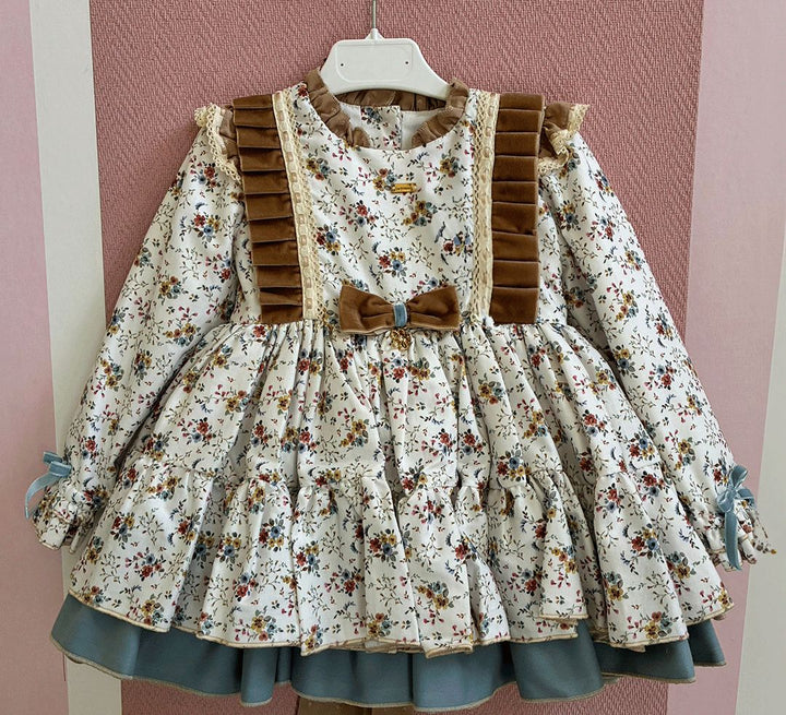 VESTIDO INFANTIL ESPAÑOL DE ALTA COSTURA. Diseño de corte clásico, inspirado en la tradición de la moda infantil española. Presenta una silueta con falda vuelo y un cuerpo entallado. Cada prenda es confeccionada a mano en talleres especializados en España, con un acabado perfecto con costuras invisibles y bordados personalizados, lo que garantiza una pieza única y exclusiva.