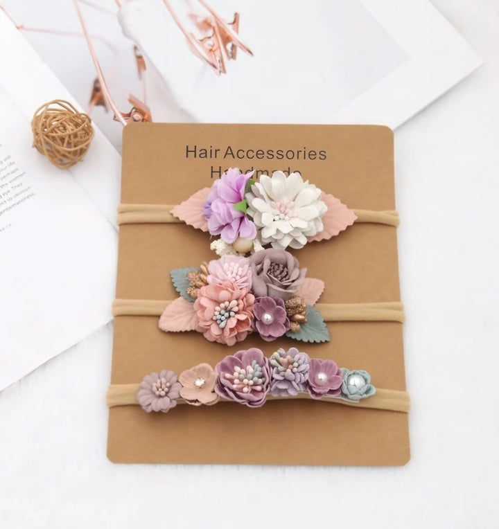 Set de 3 bandas nylon delgadas con detalle de flores