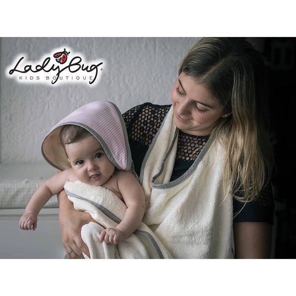 Toalla con velcro para atarla al cuello y hacerla practica durante su uso.