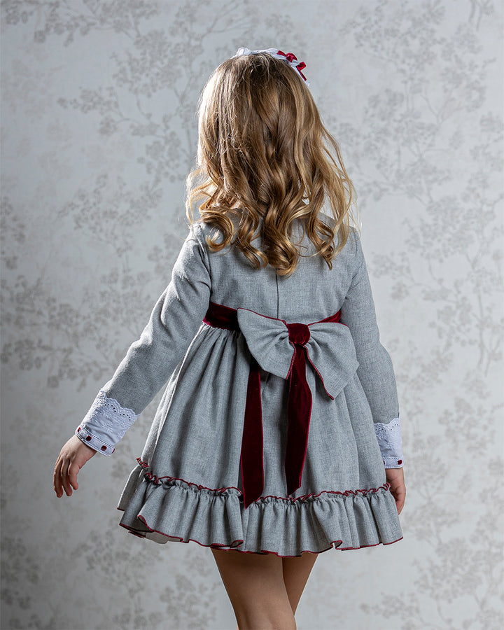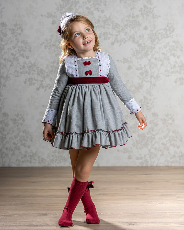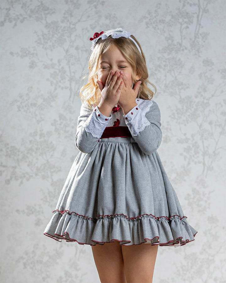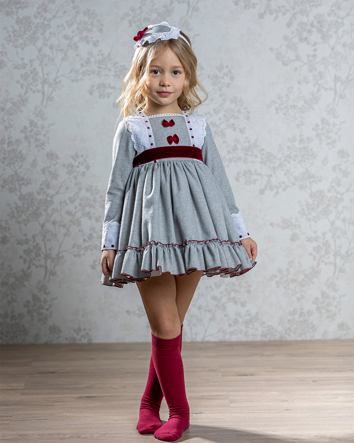 VESTIDO INFANTIL ESPAÑOL DE ALTA COSTURA. Diseño de corte clásico, inspirado en la tradición de la moda infantil española. Presenta una silueta con falda vuelo y un cuerpo entallado. Cada prenda es confeccionada a mano en talleres especializados en España, con un acabado perfecto con costuras invisibles y bordados personalizados, lo que garantiza una pieza única y exclusiva.