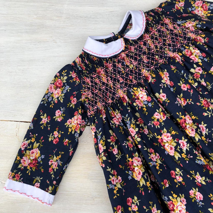 Vestido de algodón con bordado punto smock, detalle en cuello y mangas, incluye braguita a juego