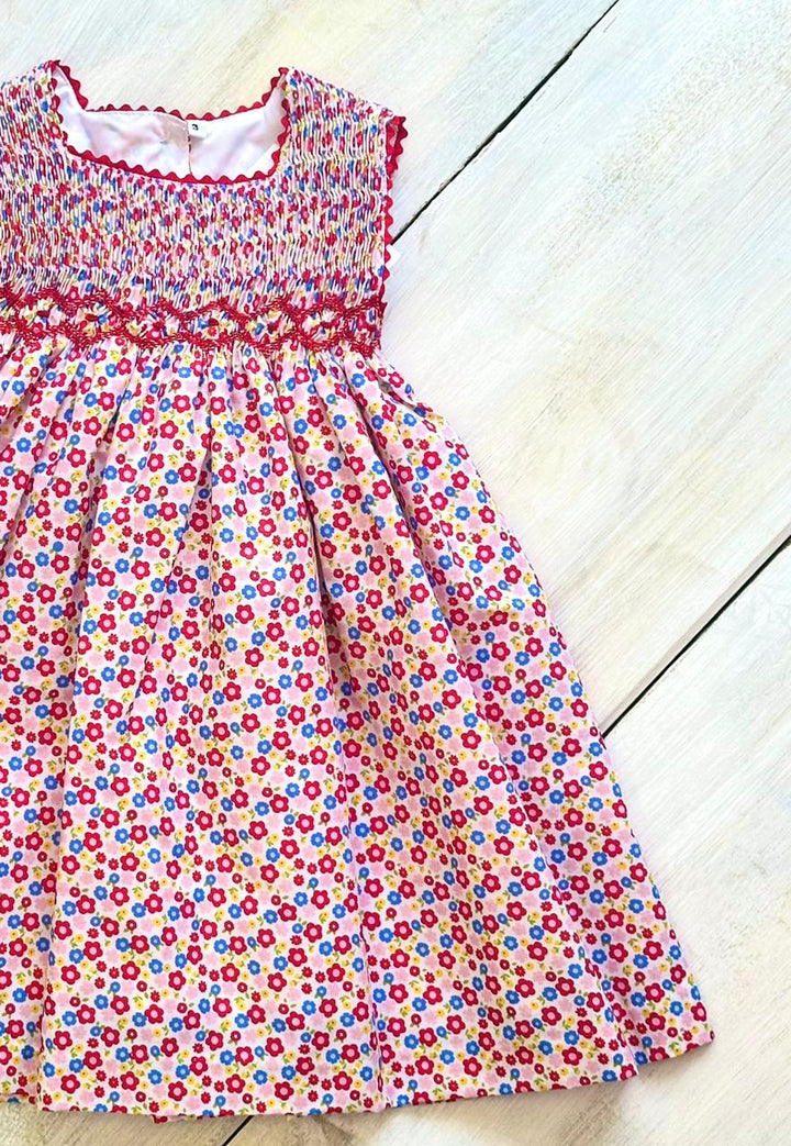 Vestido de algodón con bordado punto smock, detalle en cuello y mangas