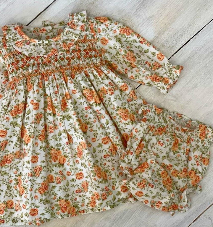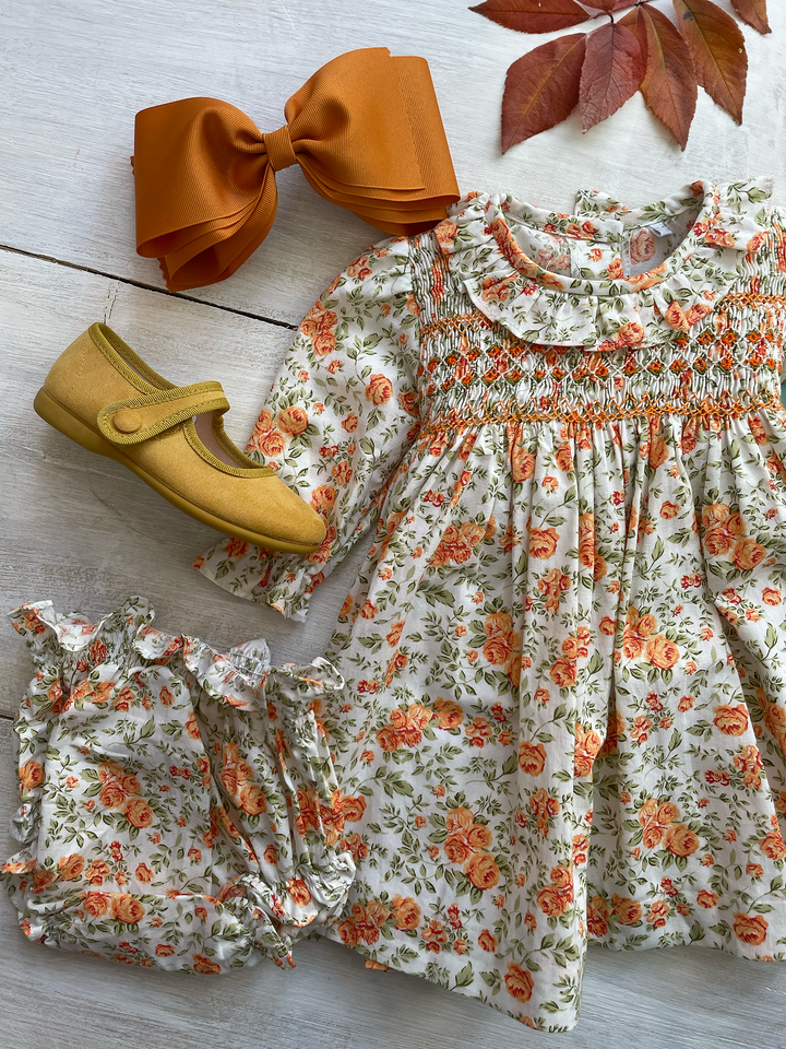 Vestido de algodón con bordado punto smock, detalle en cuello y mangas