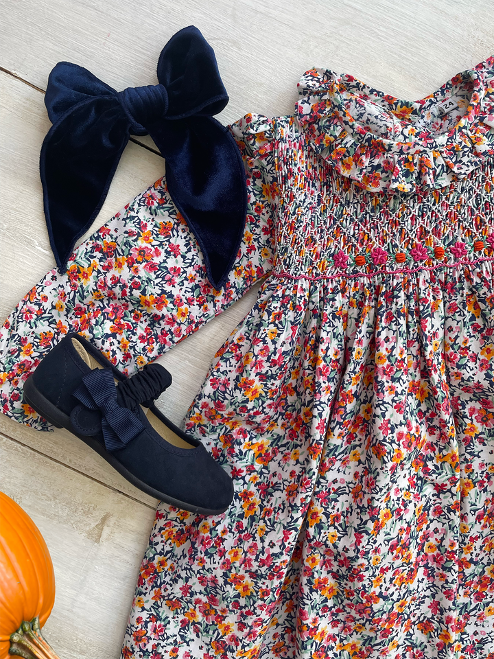 Vestido de algodón con bordado punto smock, detalle en cuello y mangas