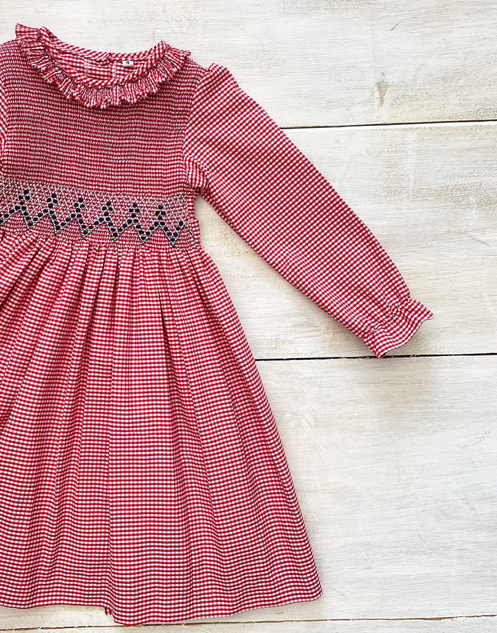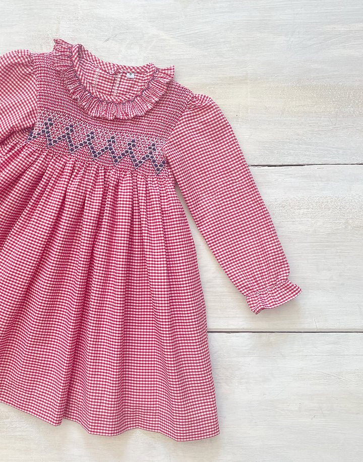 Vestido de algodón con bordado punto smock, detalle en cuello y mangas