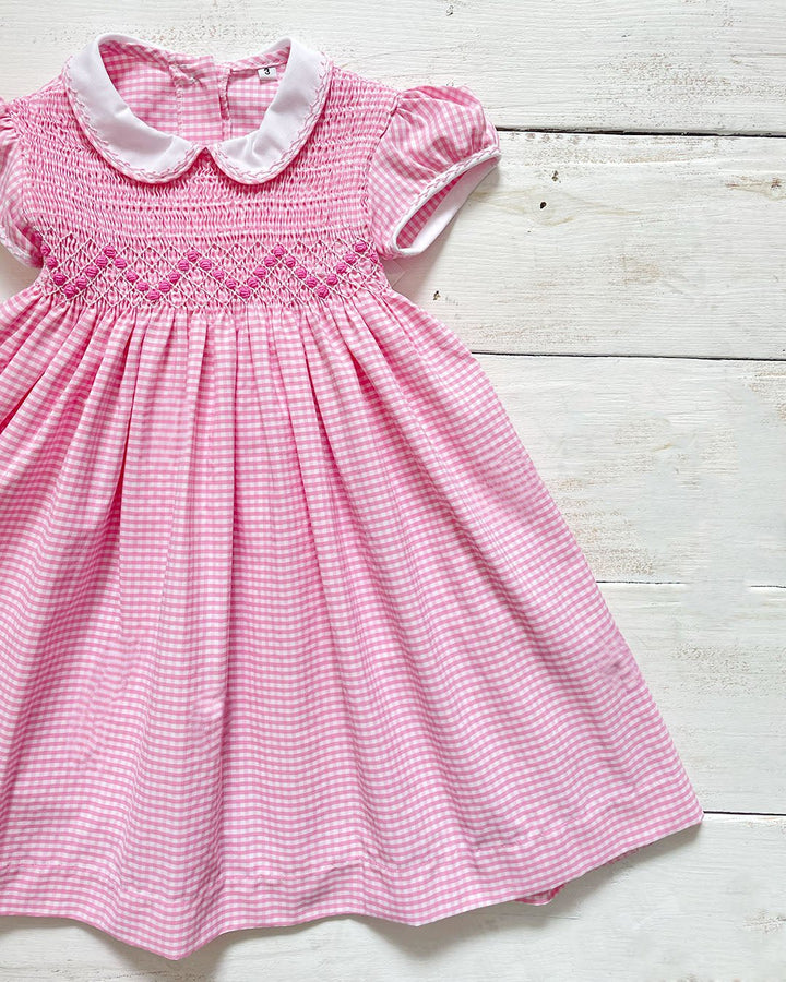 Vestido de algodón con bordado punto smock, detalle en cuello y mangas